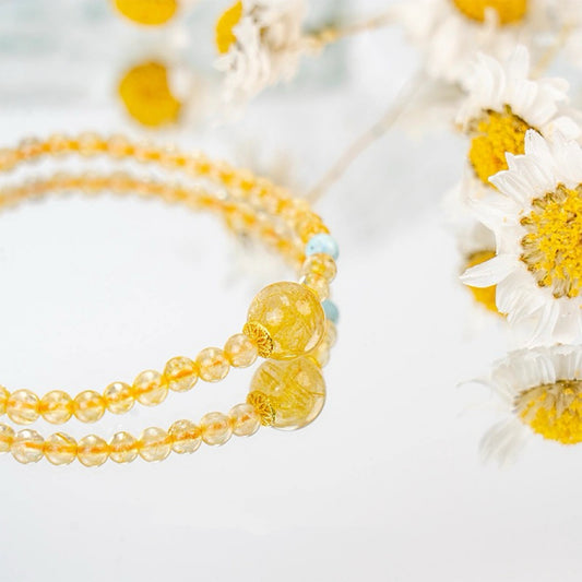Handcrafted Wealth Deity Bracelet -Golden Rutile Quartz, Citrine, and Ocean Jasper bracelet
