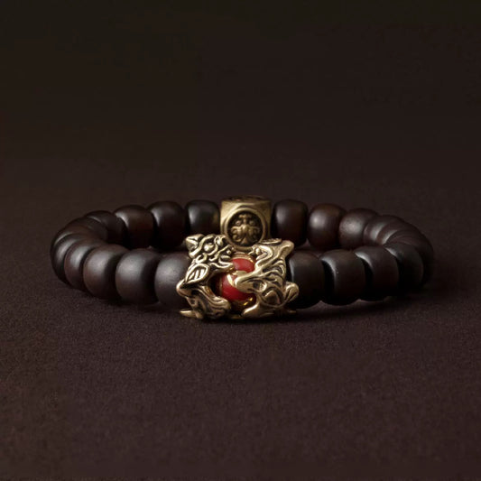 【Ward Off Evil & Change Your Destiny】Lightning-struck Wooden Pixiu Fortune-attracting Bracelet to Ward Off Evil and Bring Peace and Blessings