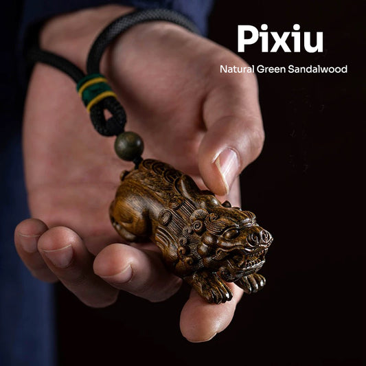 【Faith in Abundance】Green Sandalwood Pixiu God of Wealth Bracelet Wooden Carving Bracelet