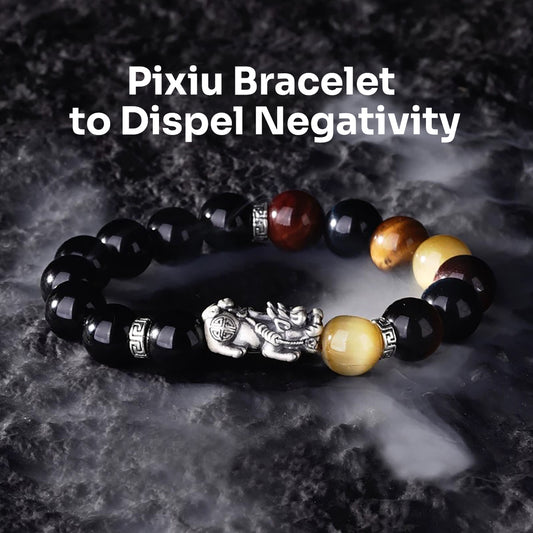 【Effortless Manifestation】Pixiu Bracelet Ward Off Negativity and Attract Good Luck Bracelet Obsidian Tiger Eye Stone Silver Bracelet Set